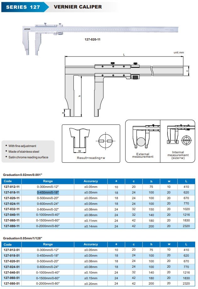 ACCUD 127-012-11 VERNIER CALIPER 300mm/12"( jaw length 75mm ) NO UPPER JAWS ( 0.02mm/0.001" )