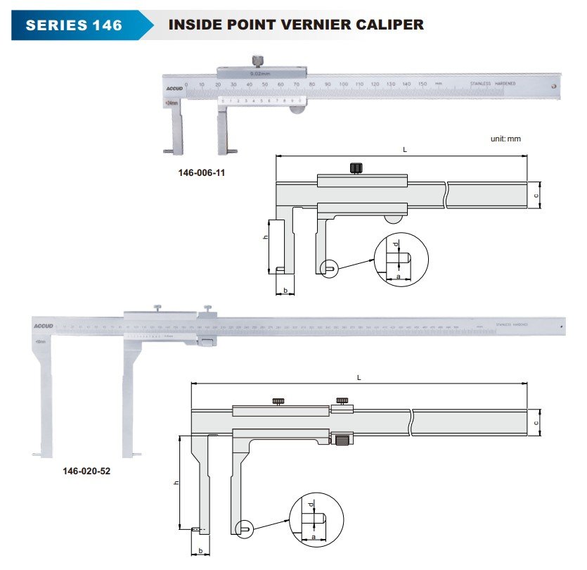 ACCUD 146-006-13 INSIDE POINT VERNIER CALIPER 24-150mm ( 0.05mm )