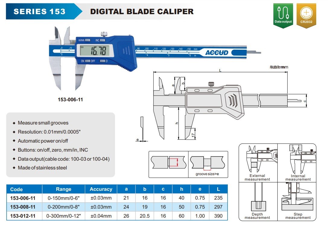 ACCUD 153-008-11 DIGITAL BLADE CALIPER 0-200mm/0-8" ( 0.01mm/0.0005" )