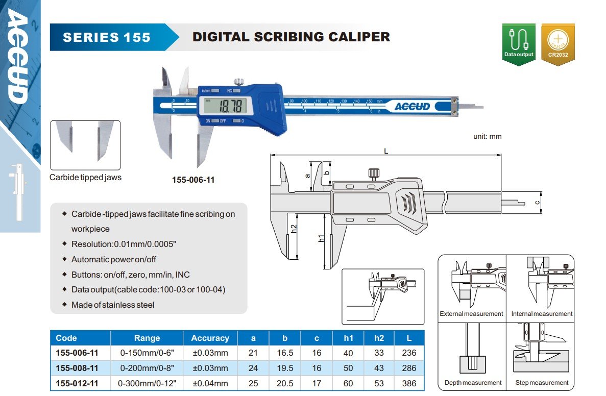 ACCUD 155-008-11 DIGITAL SCRIBING CALIPER / 0-200mm/0-8" / 0.01mm/0.0005"