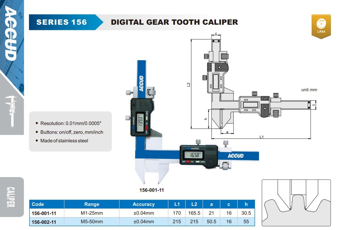 ACCUD 156-001-11 DIGITAL GEAR TOOTH CALIPER M1-25mm ( 0.01mm/0.0005" )