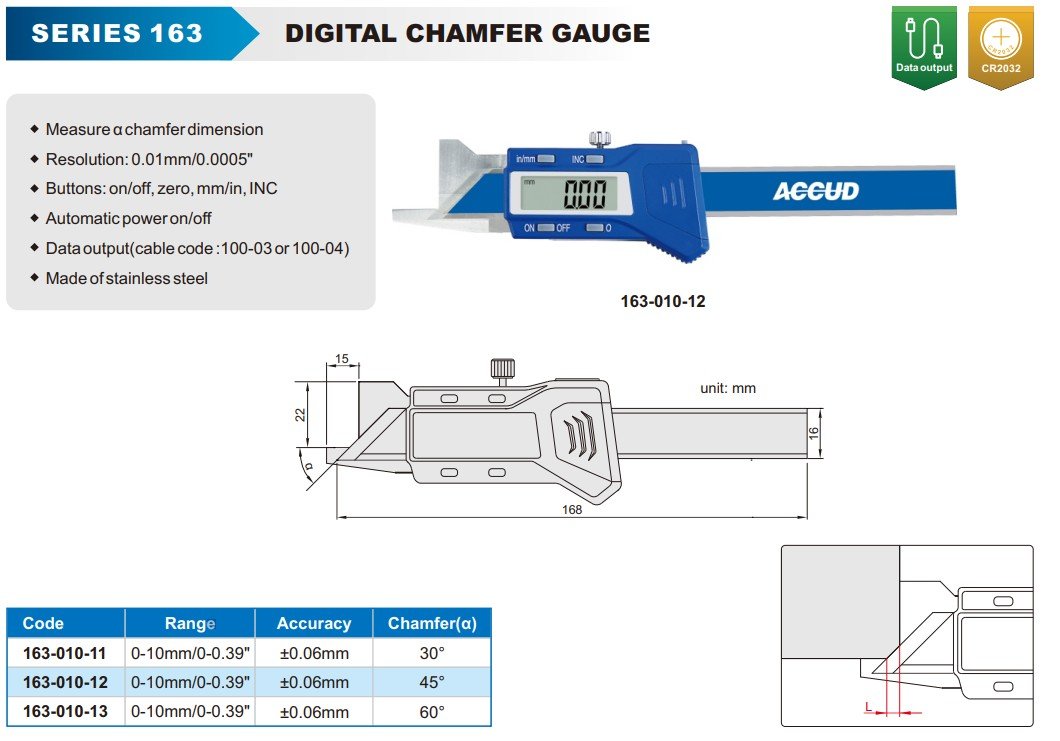 ACCUD 163-010-11 DIGITAL CHAMFER GAUGE 35° 0-10mm/0-0.39" ( 0.01mm/0.0005" )