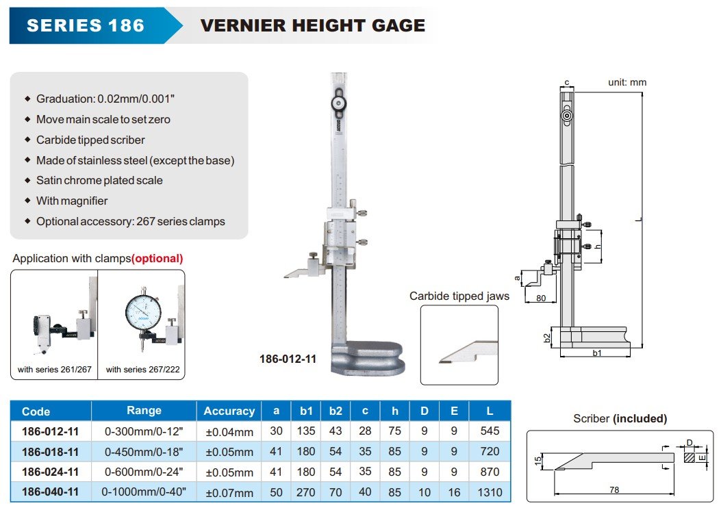 ACCUD 186-024-11 VERNIER HEIGHT GAUGE 600mm/24" ( 0.02mm/0.001“ )