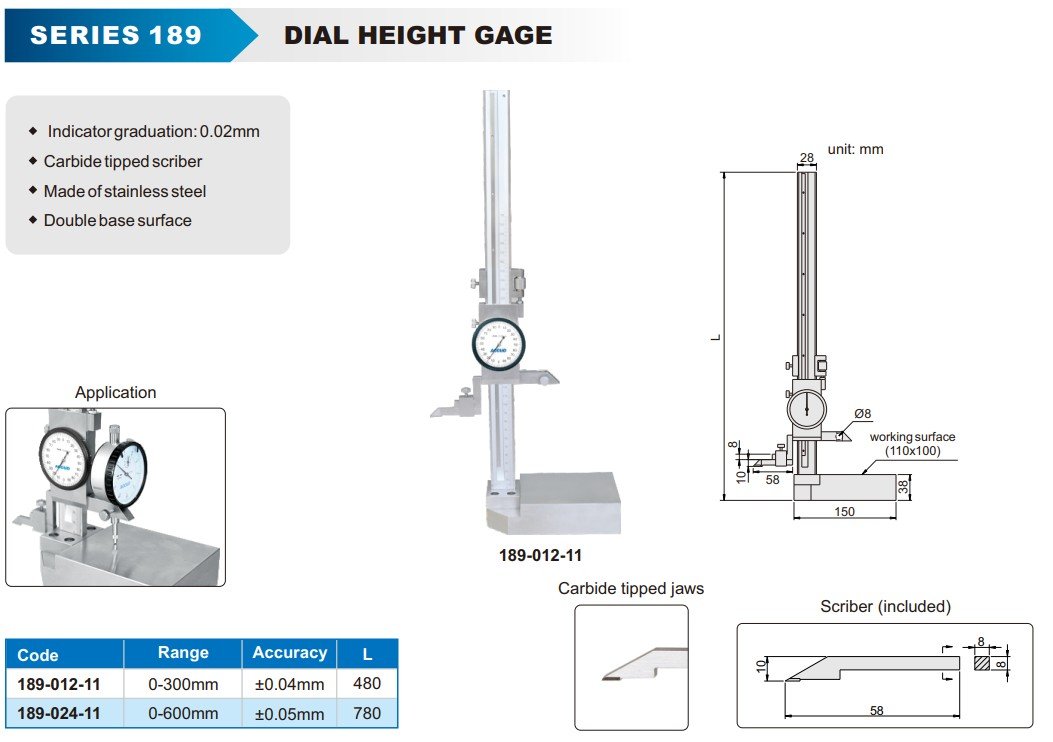 ACCUD 189-024-11 DIAL HEIGHT GAGE, 0-600mm