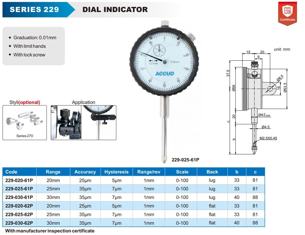 ACCUD 229-020-61P DIAL INDICATOR 20mm ( lug back )