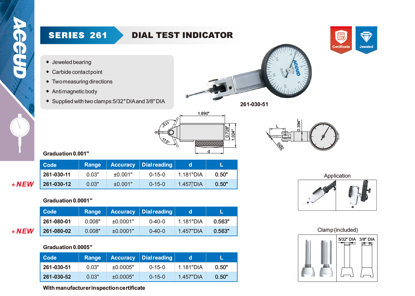 ACCUD 261-002-01 DIAL TEST INDICATOR 0-0.2mm ( 0.002mm ) BEZEL 30mm