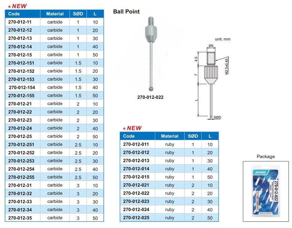 ACCUD 270-012-21 BALL POINTS, carbide / 2mm x 10 /