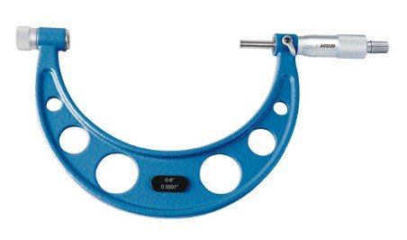 Standard analog outside micrometer with interchangeable measuring tips, with a scale of 001".