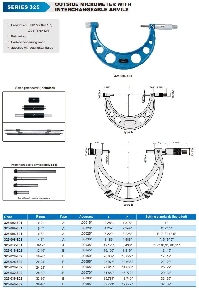 ACCUD 325-020-E02 MICROMETER 16-20" WITH INTERCHANGEABLE ANVILS (0.001in)