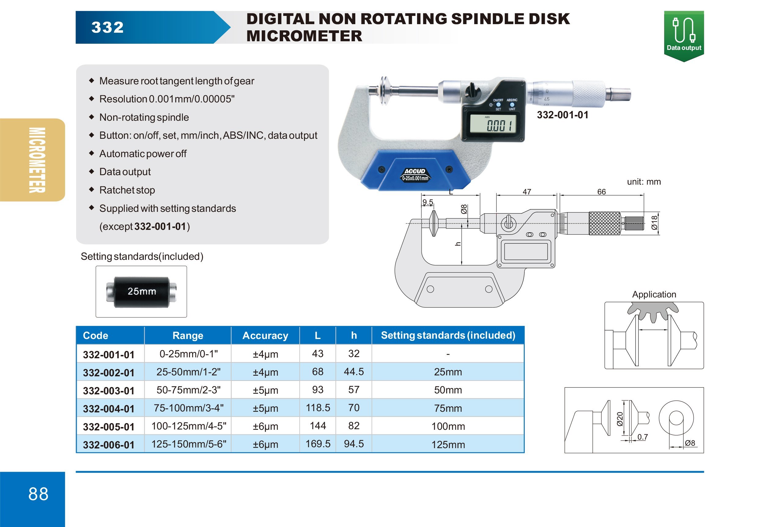 ACCUD 332-002-01 DIGITAL DISK MICROMETER 25-50mm/1-2" NON ROTATING SPINDLE (0.001mm/0.00005")