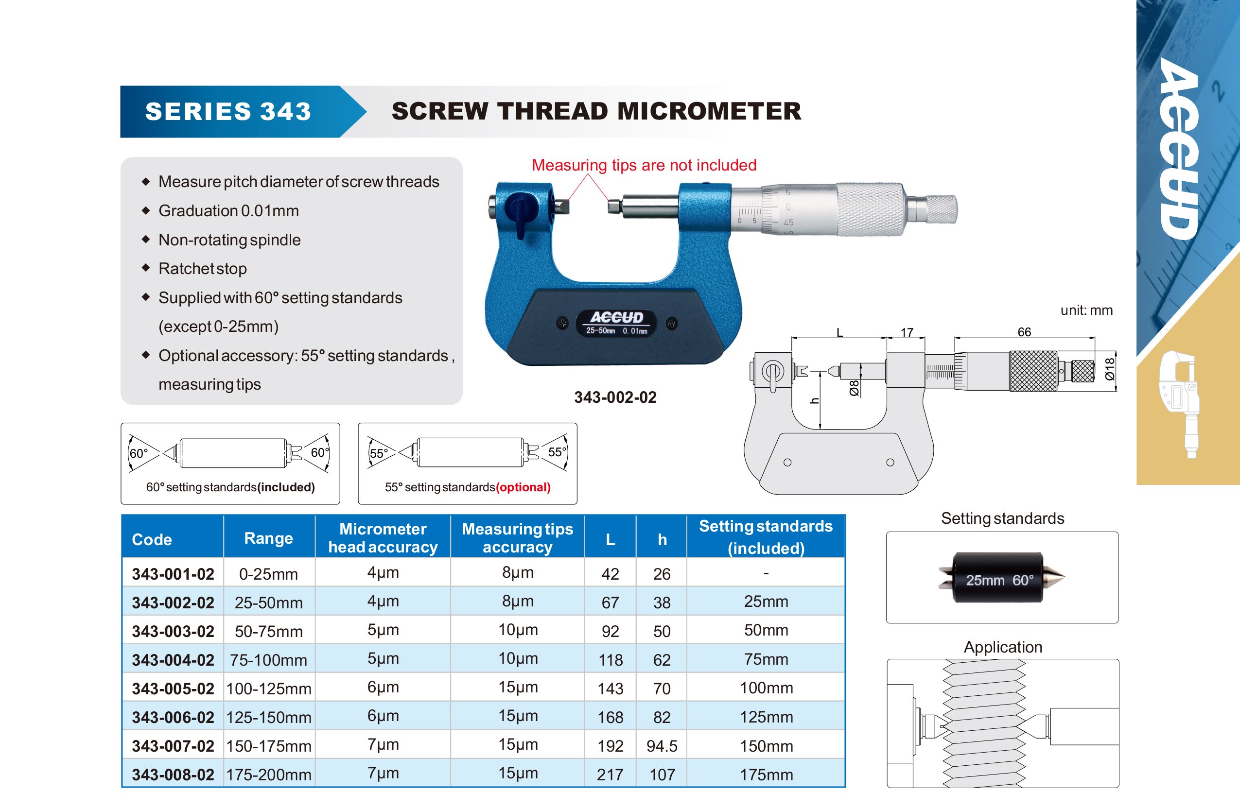 ACCUD 343-008-02 ACCCUD MICROMETER 175-200mm SCREW THREAD MICROMETER, without measuring tips (0.01mm)