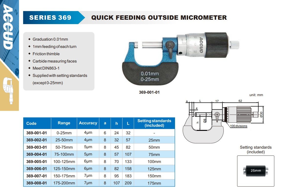 ACCUD 369-002-01 QUICK FEEDING OUTSIDE MICROMETER