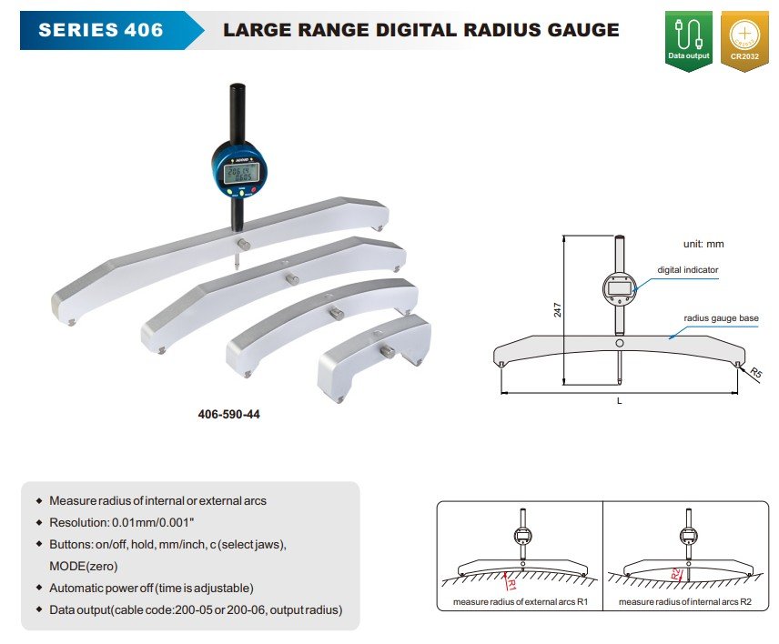 ACCUD 406-442-13 LARGE RANGE DIGITAL RADIUS GAGE, 500-11250mm/20-442"