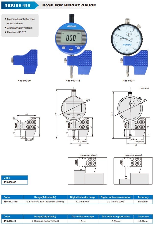 ACCUD 485-012-11S BASE FOR HEIGHT GAUGE