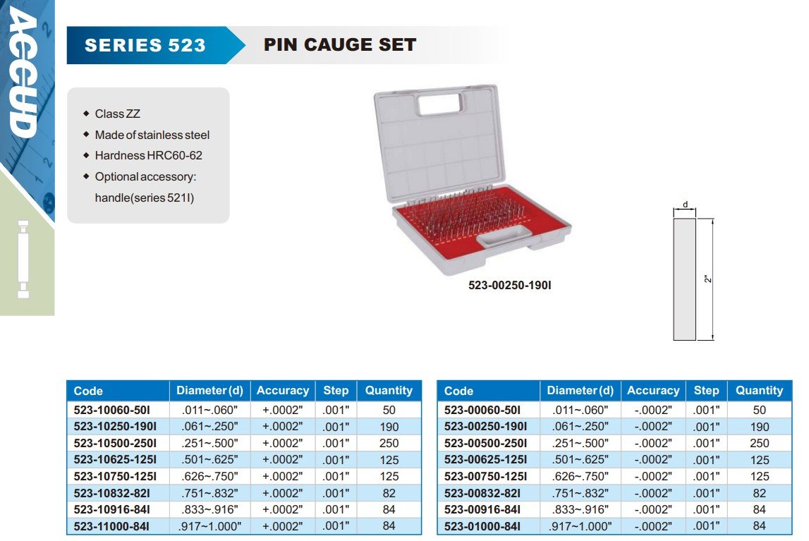 ACCUD 523-01000-84I PIN GAUGE SET, class ZZ 0.917-1.000in/ 84ks / accuracy +.0002"/