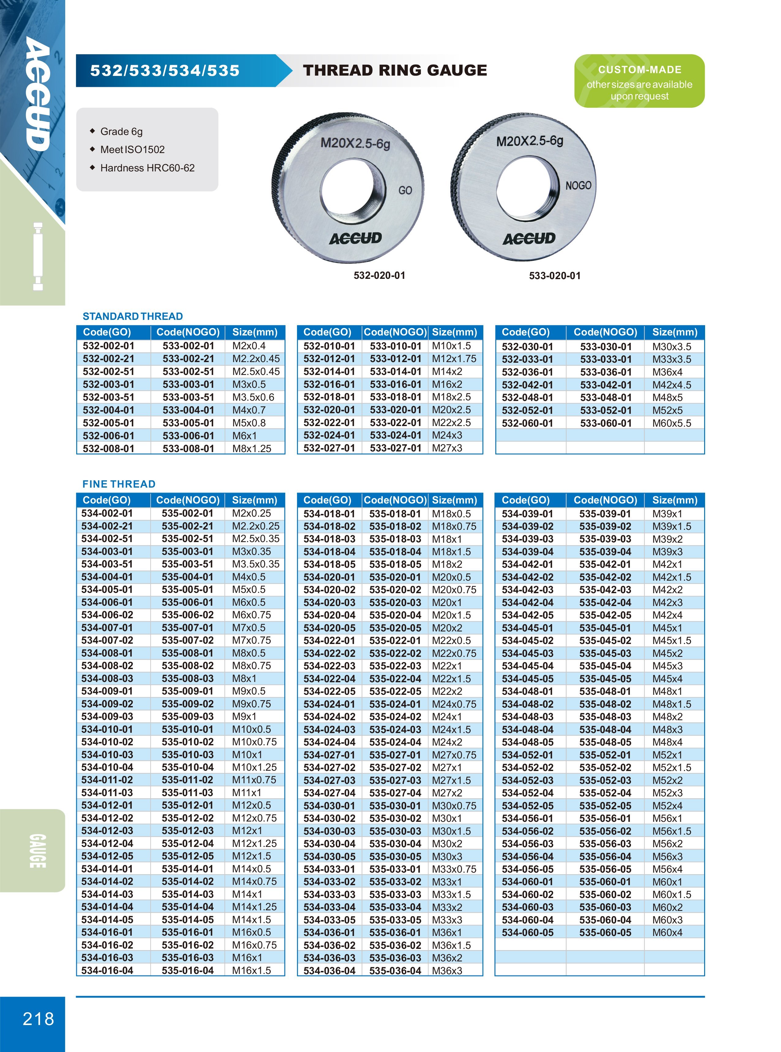 ACCUD 534-048-02H FINE THREAD RING GAUGE, GO, 6h / M48x1.5 /