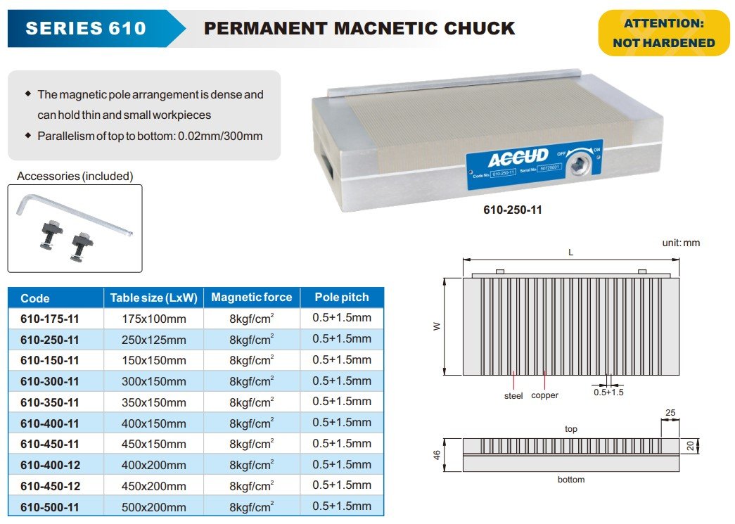ACCUD 610-300-11 PERMANENT MACNETIC CHUCK, 300x150mm