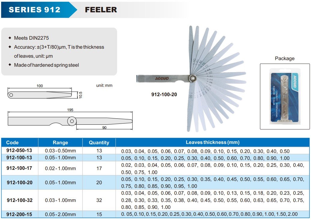 ACCUD 912-100-20 FEELER GAUGE, length 100mm ( 0.05-1.00mm ) 20pcs