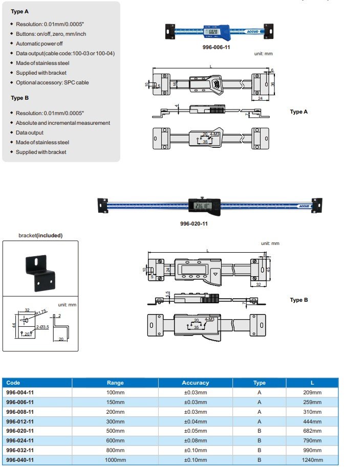 ACCUD 996-004-11 DIGITAL HORIZONTAL SCALE 100mm/4" ( 0.01mm/0.0005" )