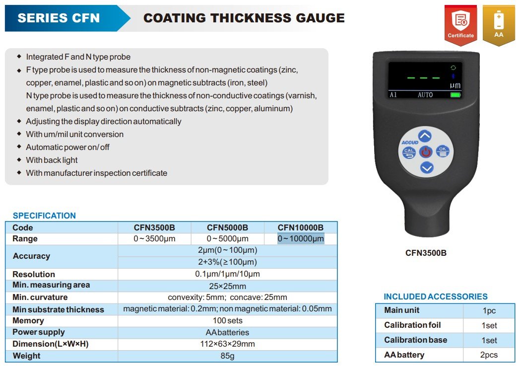 ACCUD CFN5000B COATING THICKNESS GAUGE, 0 ~ 5000μm