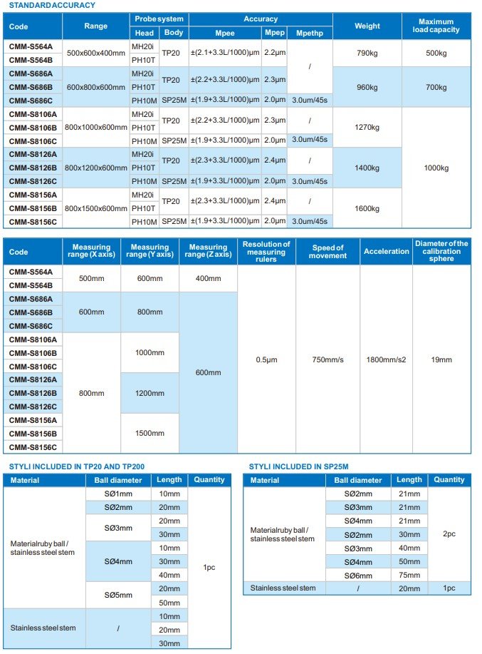 - Accuracy: Mpee - ±(2.1+3.3L/1000)μm , Mpep - 2.2μm, Mpethp - /