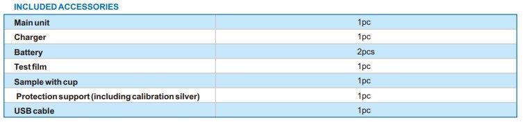 - Excitation source: 50KV/200µA; Ag target, integrated end window, micro X-ray tube and high voltage power supply, matching power ≥4W