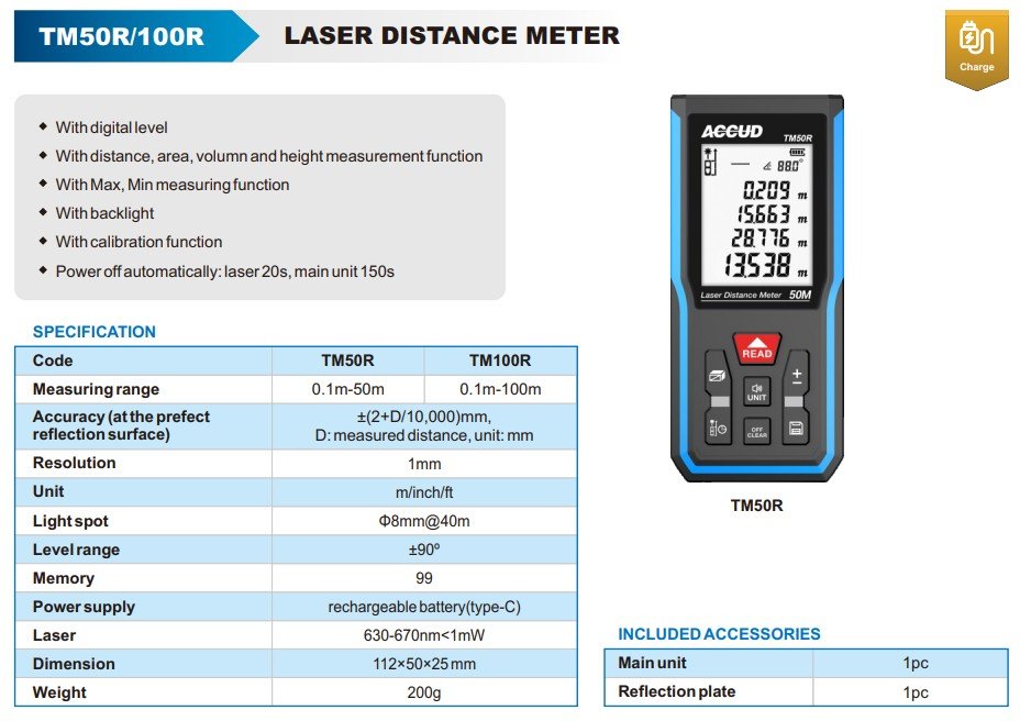 ACCUD TM50R LASER DISTANCE METER