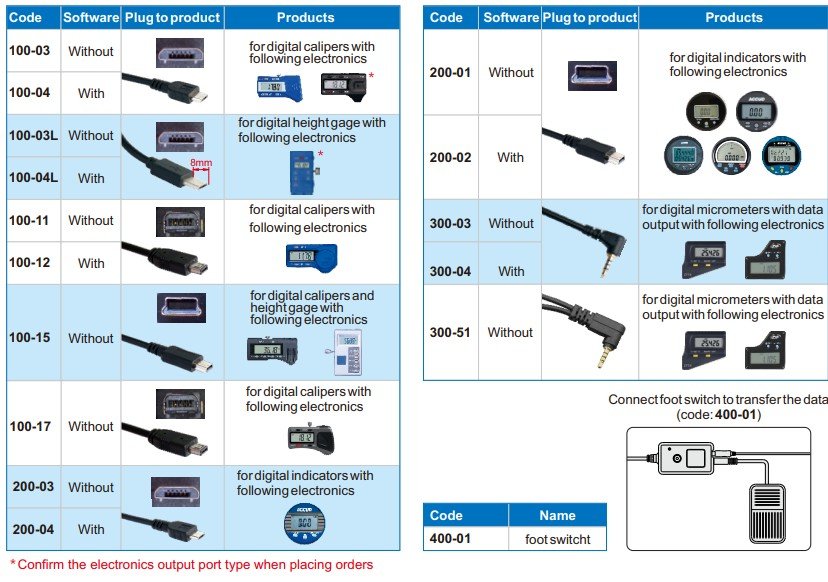 SPC cable for digital calipers. The cable with software, the data can be transferred into the software at a set interval time automatically.
