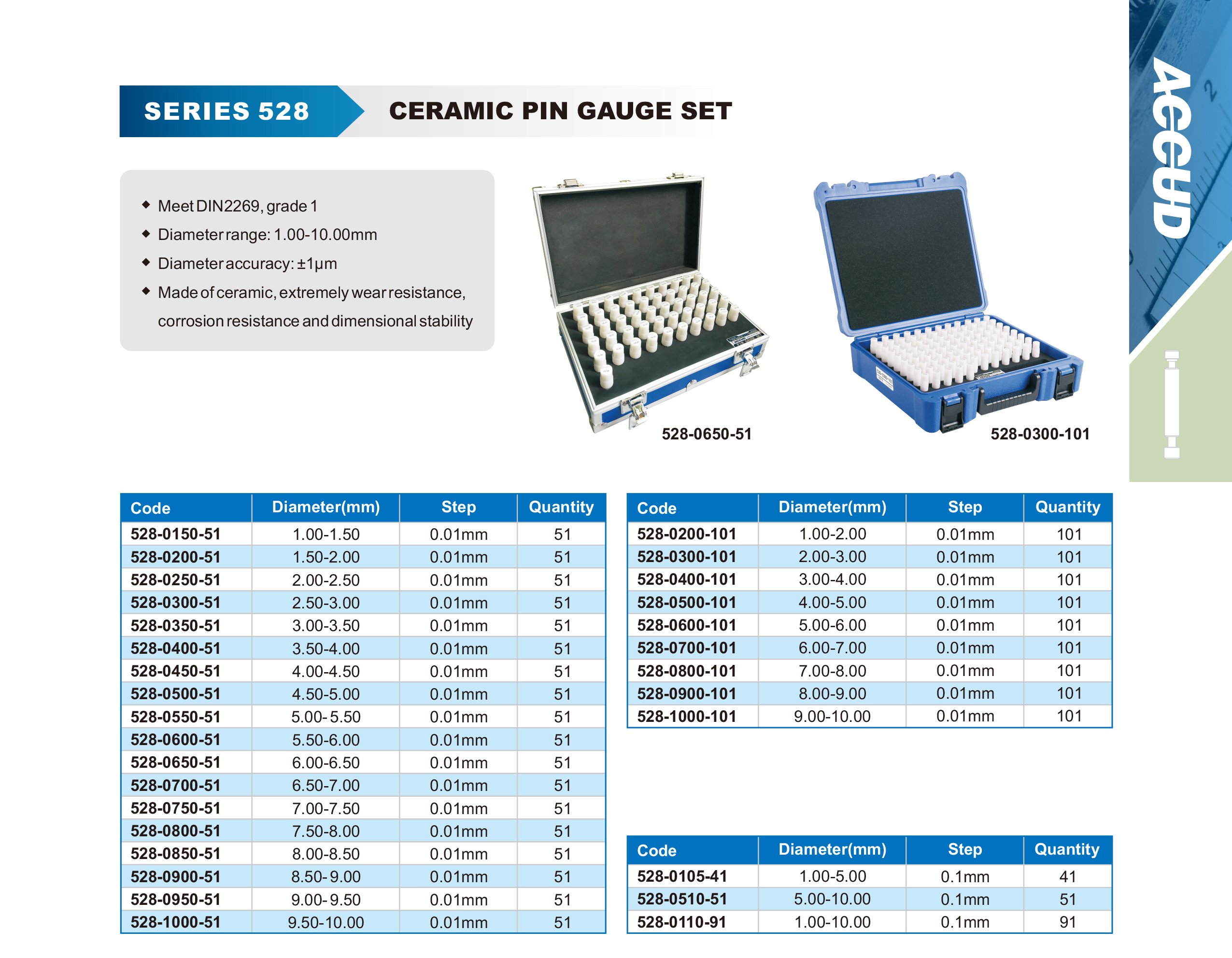 ACCUD 528-0900-51 CERAMIC PIN GAUGE SET 8.50-9.00mm - step 0,01mm / 51pcs / accuracy ±1µm